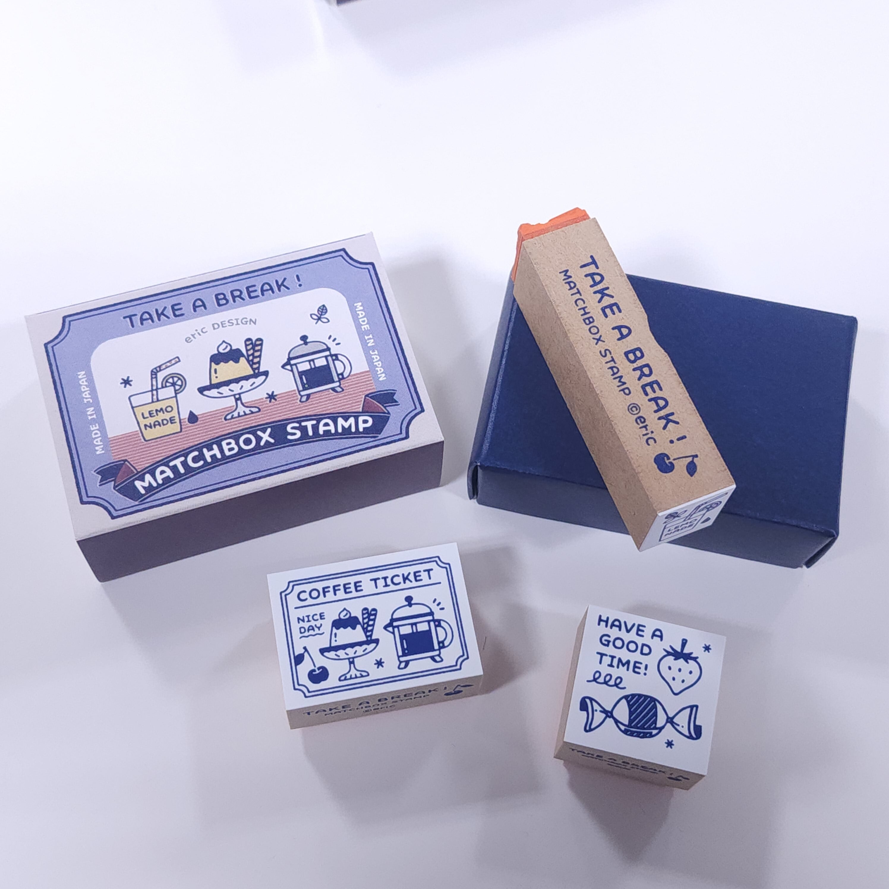 この商品は、消しゴムはんこ作家のericさんがデザインした、ユニークなスタンプセットです。マッチ箱をイメージした可愛らしい入れ物に収められており、自宅でのクリエイティブな活動を一層楽しくしてくれるアイテムです。